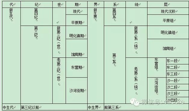 地質(zhì)工作者常常根據(jù)不同地區(qū)地層沉積的特點進(jìn)行區(qū)域性的分層,自統(tǒng)以下又細(xì)分為“組”、“段”。見下表: